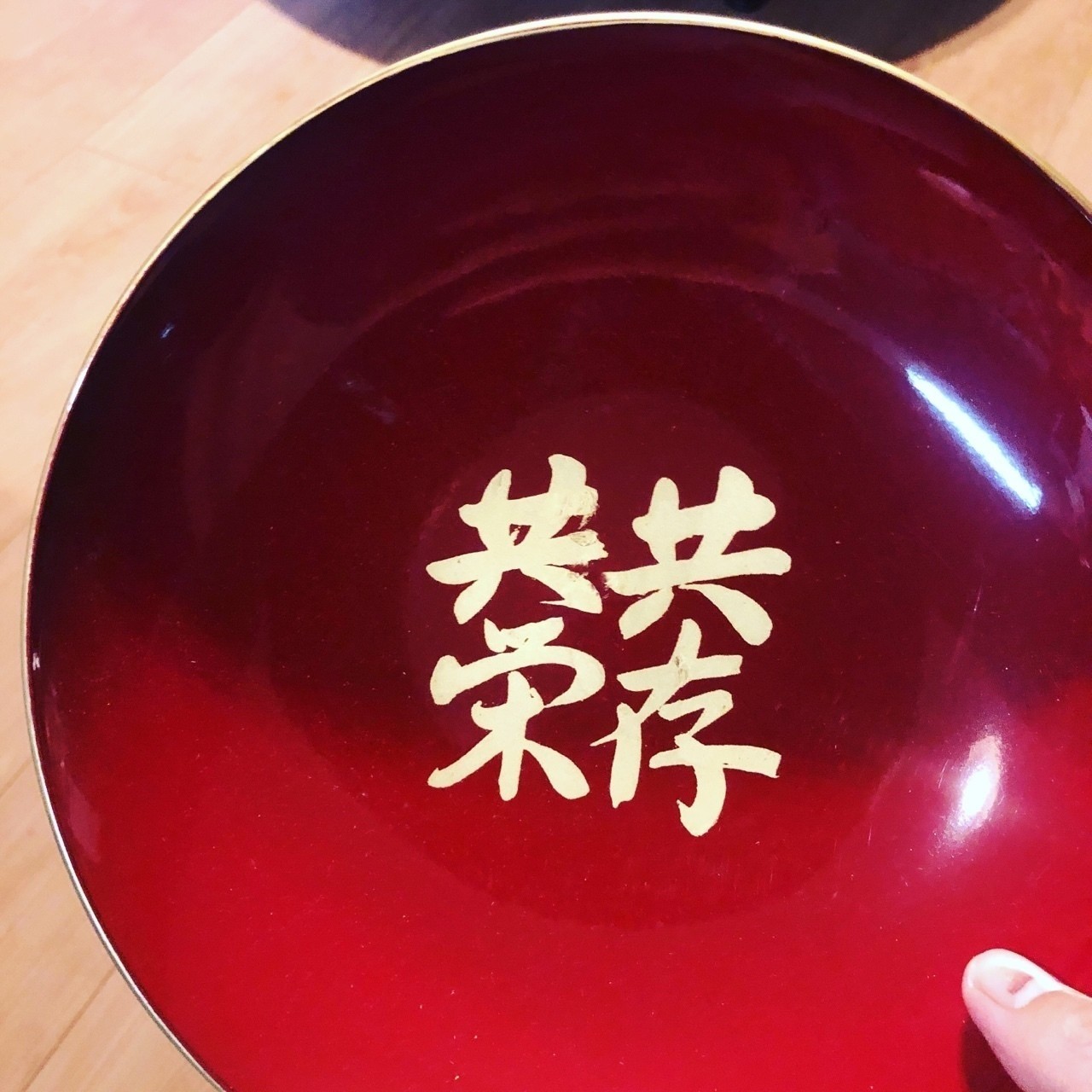 この飾り盃も松下グッズ。どこにかざんねん?という代物だが、松下幸之助の筆で「共存共栄」と書かれていることに真剣さを感じる。